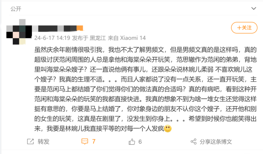 比如男频IP《庆余年》,近年来凭借着真人剧集的影响力强势破圈。然而,真人剧集相比原著小说,女频化的趋势非常明显。