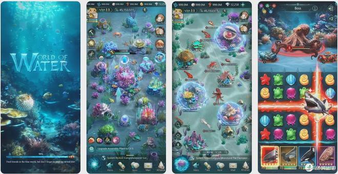 其中,星合互娱在24年推出的海洋题材COK-Like《World of Water(小小水世界)》是继《小小蚁国》和《Beast Lord:The New Land》后第三款引发市场广泛关注的产品,该游戏采用了海洋生物题材,写实卡通风格,玩法上和三消副玩法进行了深度融合,24年1月初上线后的一个月统计期内,全球下载总量(不包含韩国和中国台湾地区)已经能够和《恋与深空》打个平手(同时段《恋与深空》海外下载量为269万,《World of Water》双端下载量为254万,数据源自点点数据)。24年7月5日,《World of Water》繁语版和韩语版上线,在买量发力之下,三个版本在全球市场的下载量也实现了一段时间的飙升,不过,相较于下载量,该游戏的流水表现略显平凡,同期月流水在276万人民币左右,今年8月该游戏总内购营收为12万美元(约85.5万人民币)。
