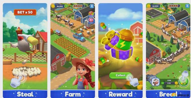 从在架产品的发行时间线来看,BeheFun新品研发发行频率不算太高,主要以长青玩法和精品游戏为主,《Top Tycoon: Coin Theme Empire》是其沉寂一年多以来重点发布的新品,在这款产品之前,九游官方门户网站BeheFun的核心产品之一正是农场题材社交博弈游戏《Rich Land》,这款游戏将农场模拟经营和老虎机相结合,同时游戏中还添加了三消解谜等副玩法。
