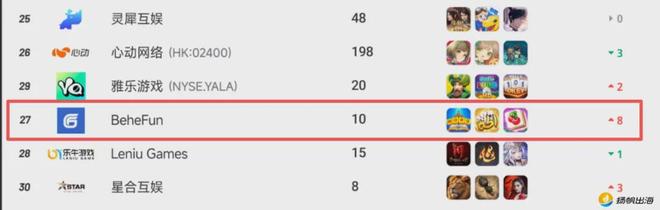 根据点点数据,BeheFun是一家专注于全球移动游戏领域的开发商&发行商,所属公司为途游。