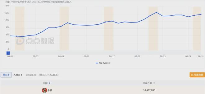 本次,是其2025年首次上榜,而对其助力最大的是《Top Tycoon: Coin Theme Empire》,一款模拟经营+社交博弈游戏。该游戏上线月起至今于美国、英国、等国等市场迎来了一波爆发,8月单月预估收入环比增长超过了216.6%,分成后的总收入达到343.7万美元。