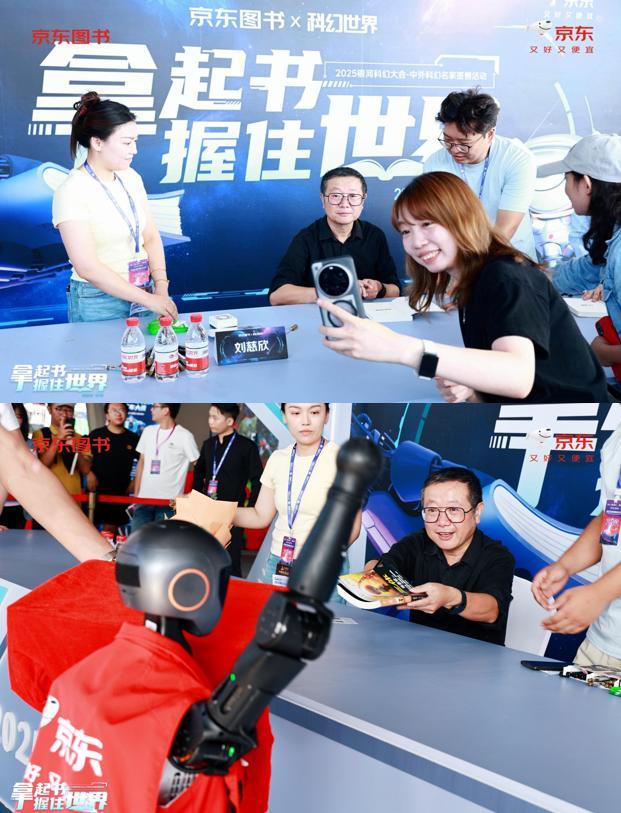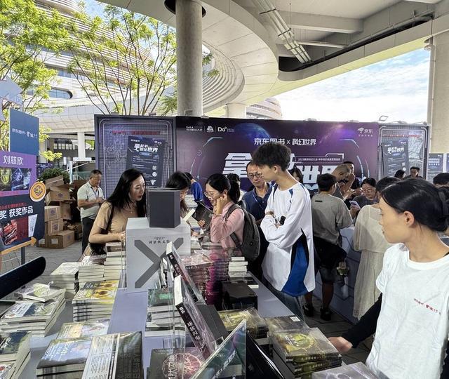 大会现场,京东图书联合《科幻世界》杂志社共同举办的中外科幻名家签售活动,成为大会最受期待的亮点之一。此外,京东设置了“拿起书,握住世界”主题展区和“AI探索编辑部”互动区,并推出线上活动会场,广大读者和现场观众不仅可以在现场的售书区和AI产品体验区打卡解锁福利。
