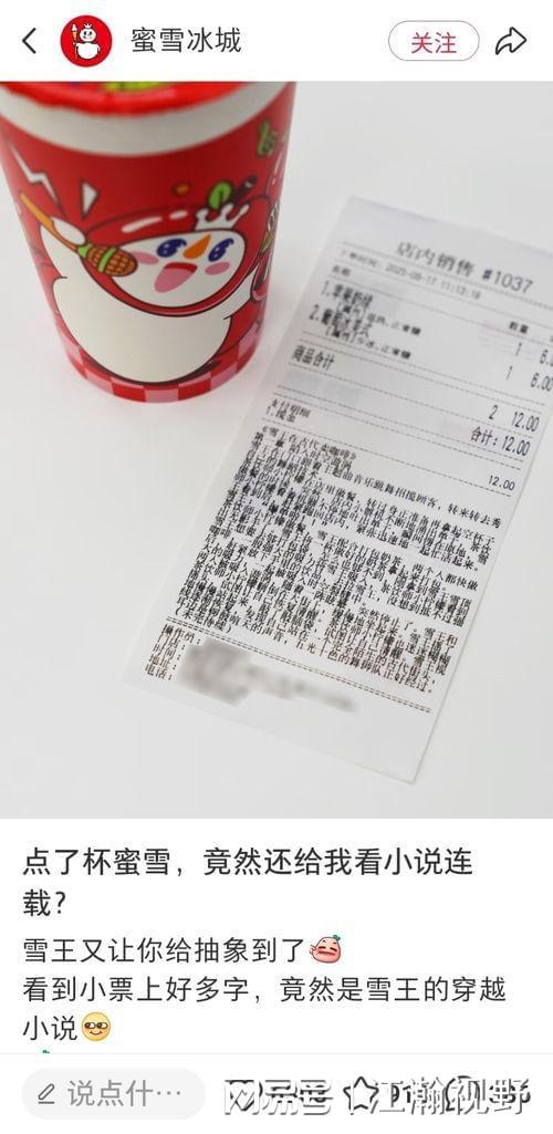 在竞争激烈的饮品市场中,蜜雪冰城凭借一系列别出心裁的营销活动频繁出圈,近期“在小票上连载小说”这一创新举动更是登上热搜,引发广泛关注,我们到底该怎么看这件事?