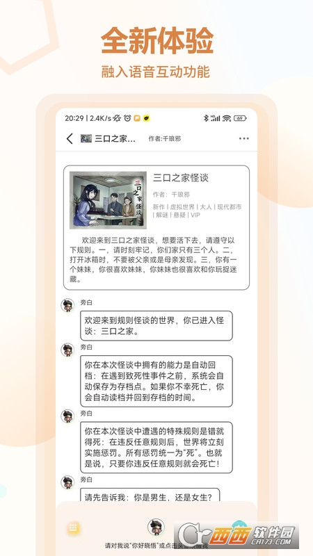 全球首创语音对话小说,是将有声小说与AI语音技术相结合的能听能对话的互动音频产品。