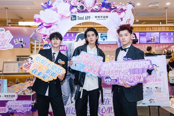 Soul平台上的三位高人气虚拟伴侣“孟知时”、“杨亦泽”和“屿你”,被赋予鲜明的人设,化身为三位风格各异的“言情小说男主”,并拥有各自的联名限定奶茶和杯套。用户购买一杯茶,即被喻为“选择与一位AI男主的恋爱开场”,巧妙地将“甜蜜、治愈、快乐”的陪伴感实体化。