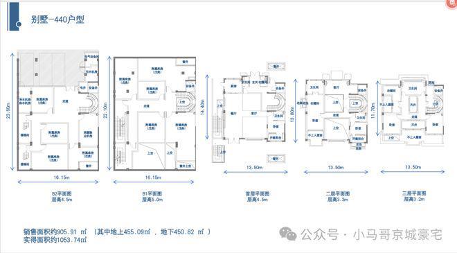 440别墅【房本面积906(地上 455 平),使用面积1054平,花园264平】