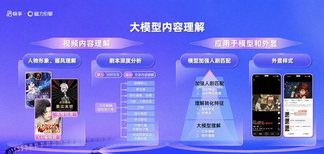 继承快手短剧Native链路的优势,漫剧的变现也能实现端内闭环,并且为用户打造更加丝滑、沉浸的观剧体验。同时,快手还将大模型技术应用到漫剧领域,不仅能实现更精准深入的视频内容、人物形象理解,还通过大模型精准识别用户付费点,进而提升人剧匹配效率,让漫剧高效触达高兴趣、高付费意愿用户。