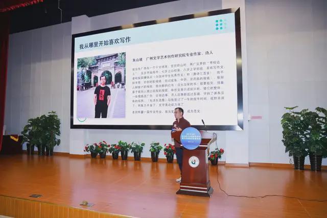 颁奖仪式后,活动进入了“文学名家进校园”环节。著名作家朱山坡以《我从哪里开始喜欢写作》为题,分享了他与文学结缘的心路历程,其真诚而智慧的讲述引发了在场师生的强烈共鸣。