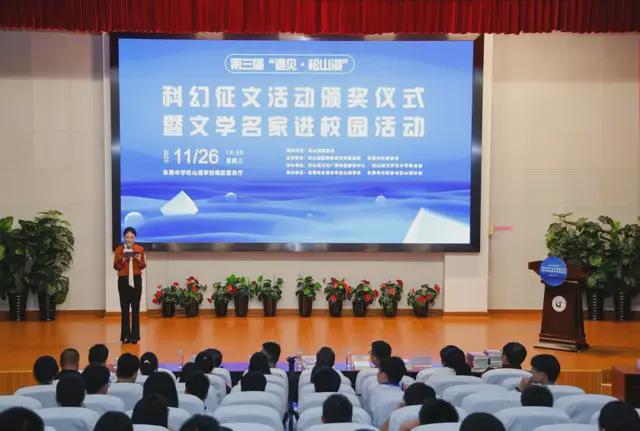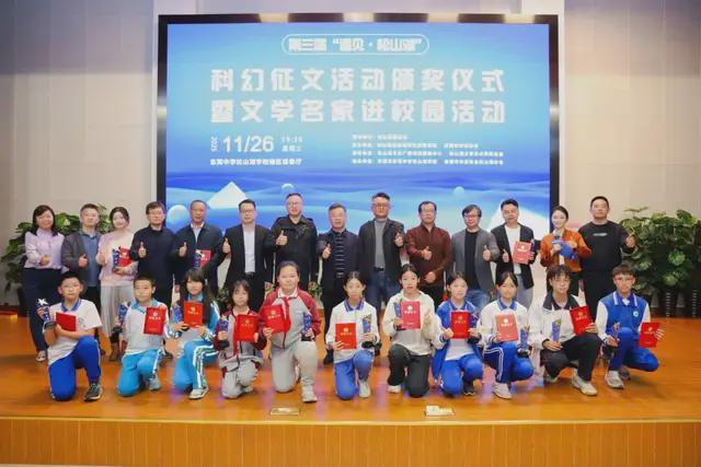 九游官网11月26日,第三届“遇见·松山湖”科幻文学征文活动颁奖仪式暨文学名家进校园活动在东莞中学松山湖学校举行。来自文学界、教育界的专家学者、获奖作者以及师生代表齐聚一堂,共同见证科学之光与文学之梦的璀璨交融。