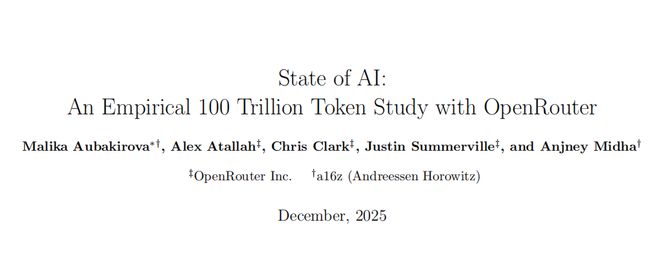 这是全球模型聚合平台 OpenRouter 联合硅谷顶级风投 a16z 发布的一份报告,基于全球 100 万亿次真实 API 调用、覆盖 300+款 AI 模型、60+家供应商、超过 50% 非美国用户