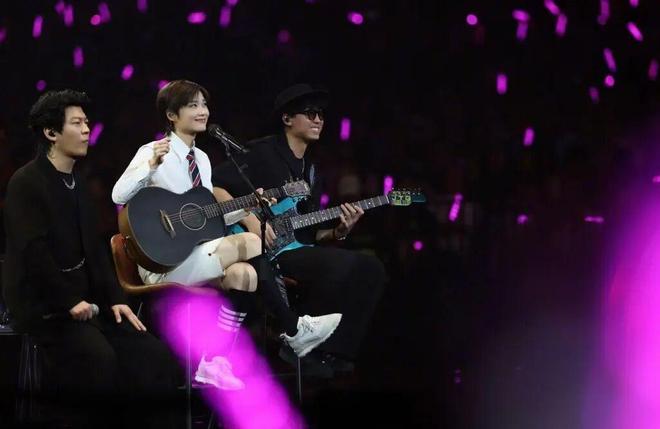 2 月重庆站演出中,3 万支淡蓝色荧光棒汇成星海,她的红丝绒复古礼服和辣椒耳环成亮眼记忆点。