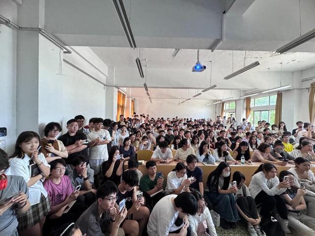“虫队”告诉大家一个生活细节,他在抖音跟自己有关的全部点了“不感兴趣”。对话现场气氛热烈,大学生们积极参与互动,提出了有趣的问题。“虫队”很认真地进行了回答,整场对话,他和汤俏的观点、见解引发了师生们的共鸣。