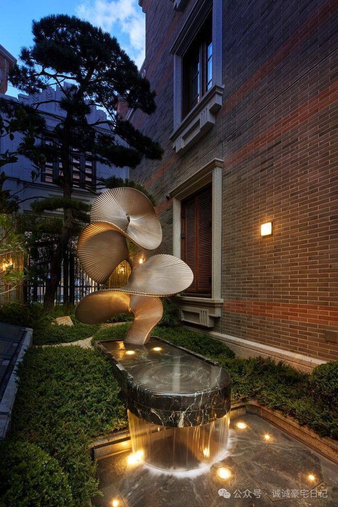 地面延续酒店式落客区海棠纹拼花镶钻,铁打纹工艺,其间还有老石板,青石板,中国黑老石皮,柏坡黄的石皮等原石原面铺装,老石皮从大料里取出,数量少而贵,由此也可看出保利·永兴里在别墅打造上是真舍得,也是真高级.