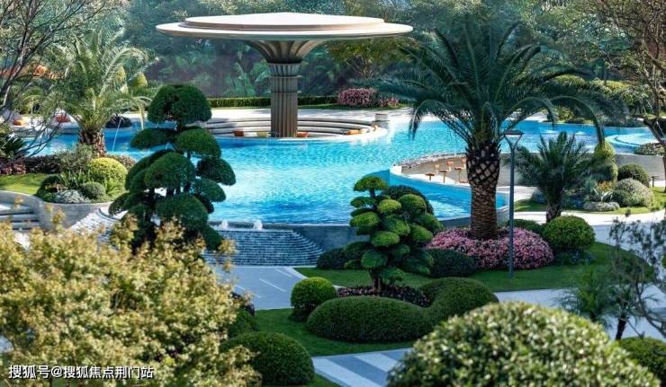 池底是由数万片特选的马赛克,专门请老师傅用传统手工拼花工艺一点点铺上去的,图案灵动又精致。阳光照下来,水面波光粼粼,真的就像一颗巨大的蓝宝石在园区里闪闪发光。