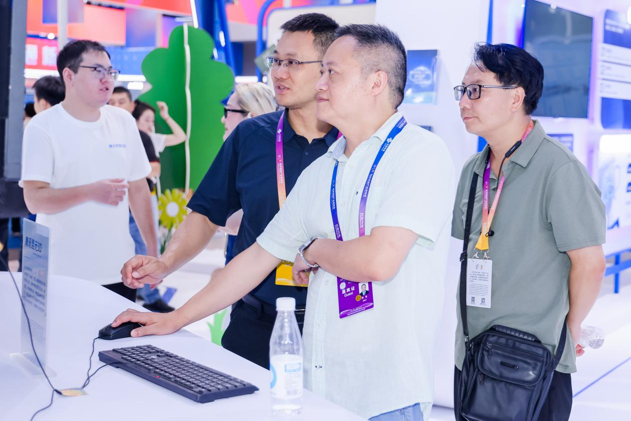 腾讯展区设置“AI基础能力”展示区,汇聚腾讯云高性能计算集群、腾讯混元大模型等底层技术能力,通过场景化应用让参观者直观感受AI创作的无限潜力。