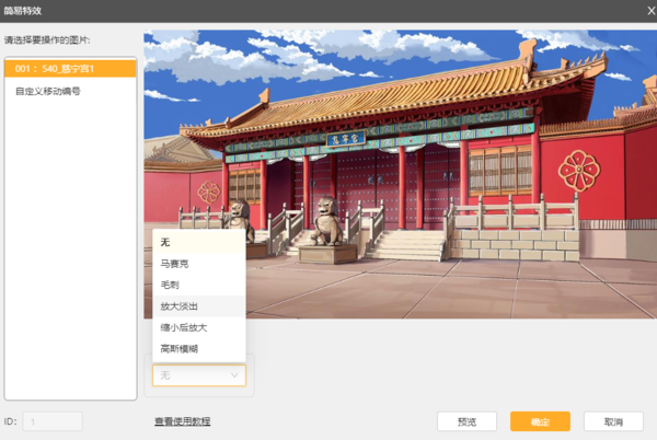 当然了,如果需要添加的效果没有,或者是需要这么复杂,也可以点击“简易特效”键。查看其它的特殊效果。