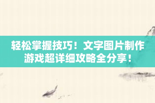 只有多练多化,我们才能在文字图片制作游戏中获得更多的技巧和经验。无论是对图像处理的熟练掌握,还是对创意设计的积累,在实际操作中多尝试,多练习,都是非常有益的。