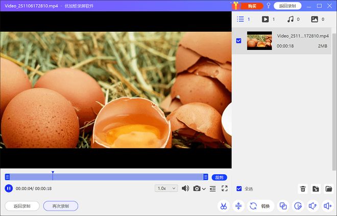 步骤3.录制完成后,软件自动弹出预览窗口,点击 “导出” 即可保存文件,支持直接分享至微信、QQ 等平台。