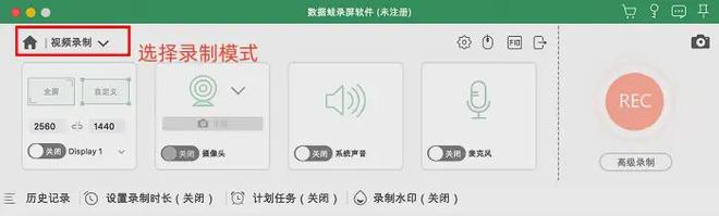 步骤1:苹果电脑如何录屏?首先点击启动数据蛙录屏软件,进入主界面后自由挑选适配的录制模式。本次将以“视频录制”模式为示例,为大家详细演示操作流程。
