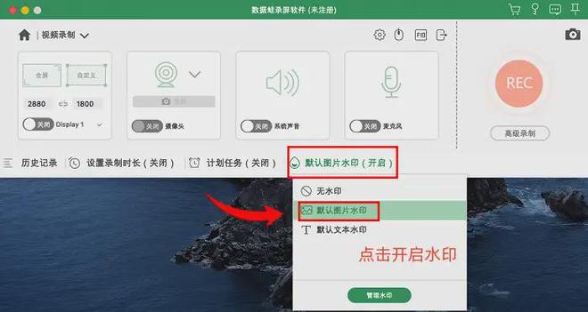步骤2:完成录制区域的调整与音频源的设置后,用户可以根据需求开启“图片水印”功能。待所有参数配置完毕,点击“开始录制”按钮,就能正式启动视频录制。