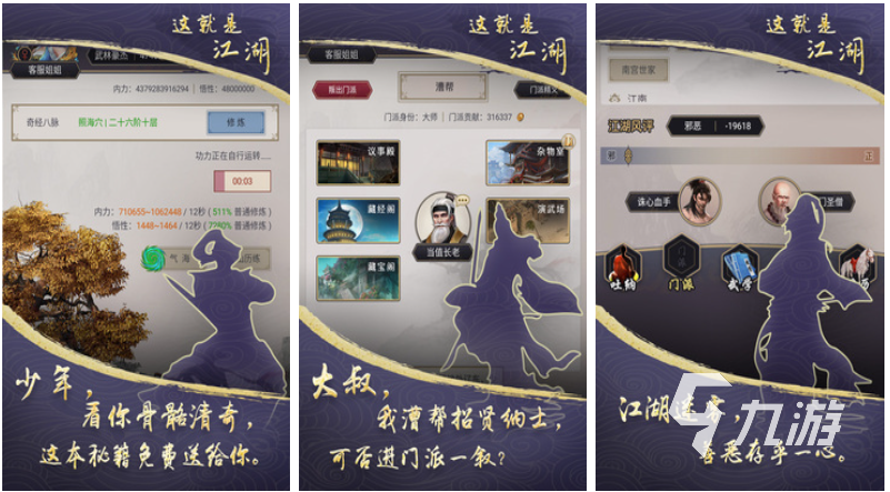 这就是江湖是款有着浓郁武侠背景的文字挂机手游,用紧凑的文字为玩家塑造了真实的武林世界背景,丰富的职业以及武功心法选择增加了游戏的耐玩性,文言文的对话、叙述方式也让本作更具意境,在这款手游中你不仅可以扮演侠客闯荡江湖,也可以招募一些能人异士建造一个门派,超有带感的文字挂机类玩法彰显出本作独特的魅力。