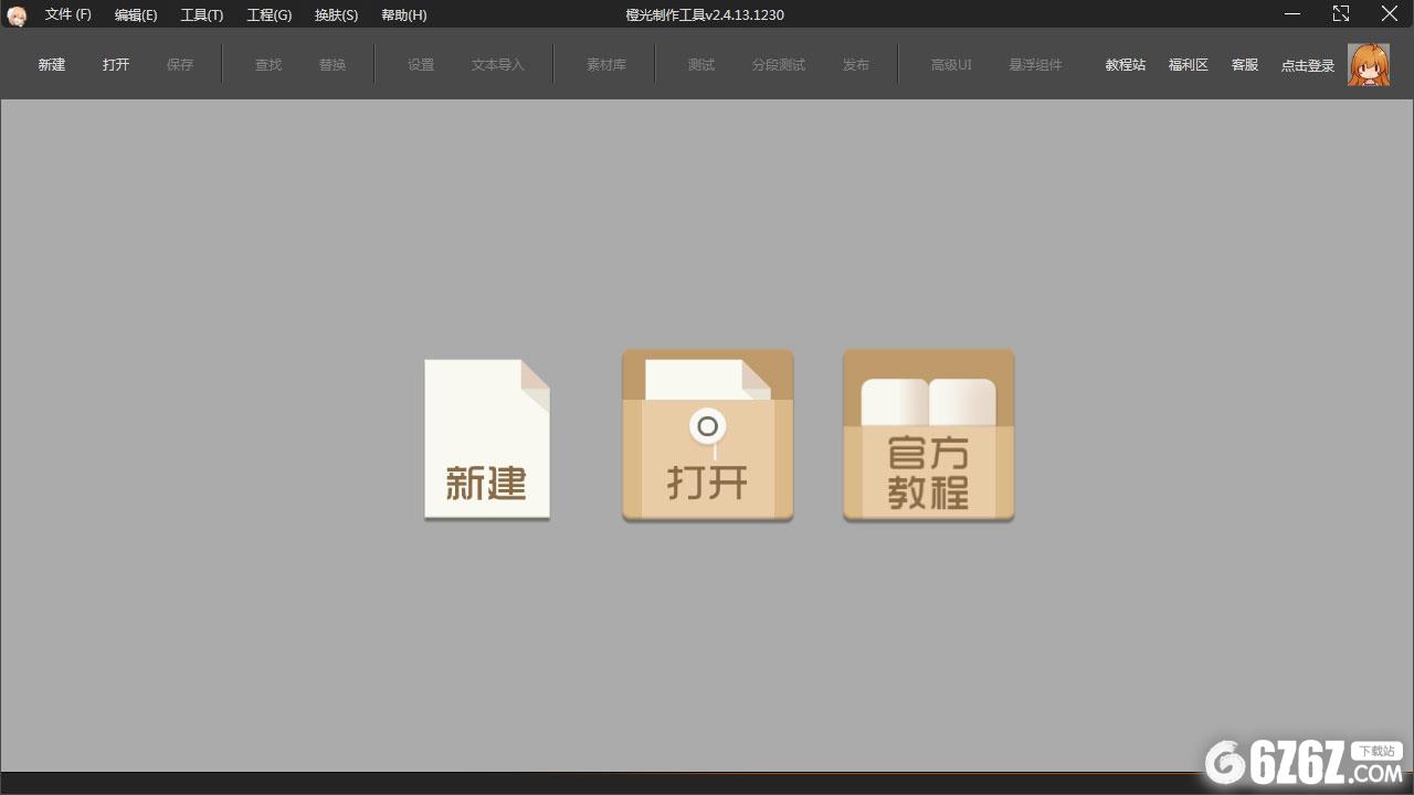 我们打开熟悉的橙光文字游戏制作工具。因为这是一个教程,所以我们新建一个工程并且新建一个剧情。