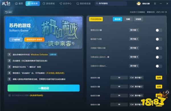 尽管具体功能可能随游戏版本略有调整,但主流《苏丹的游戏》十五项修改器通常包含以下实用选项: