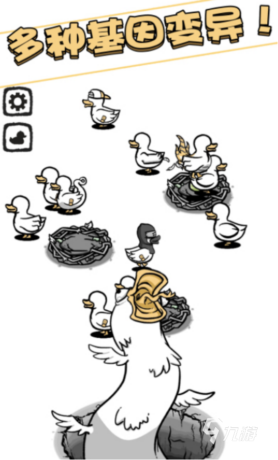 非常有趣的休闲鸭子手游,鸭子孵化之后基因开始突变,这里有很多非常有趣的变种鸭子等你来收集,点亮图鉴之后获得无限惊喜满足众多玩家的收集欲望,每次开局提供孵化鸟巢,通过点击鸭蛋来孵化出鸭子,整体操作较为便捷,所孵出的鸭子并非一成不变。外观、头部都会发生多样变化,每只鸭子都有独特的技能形象。