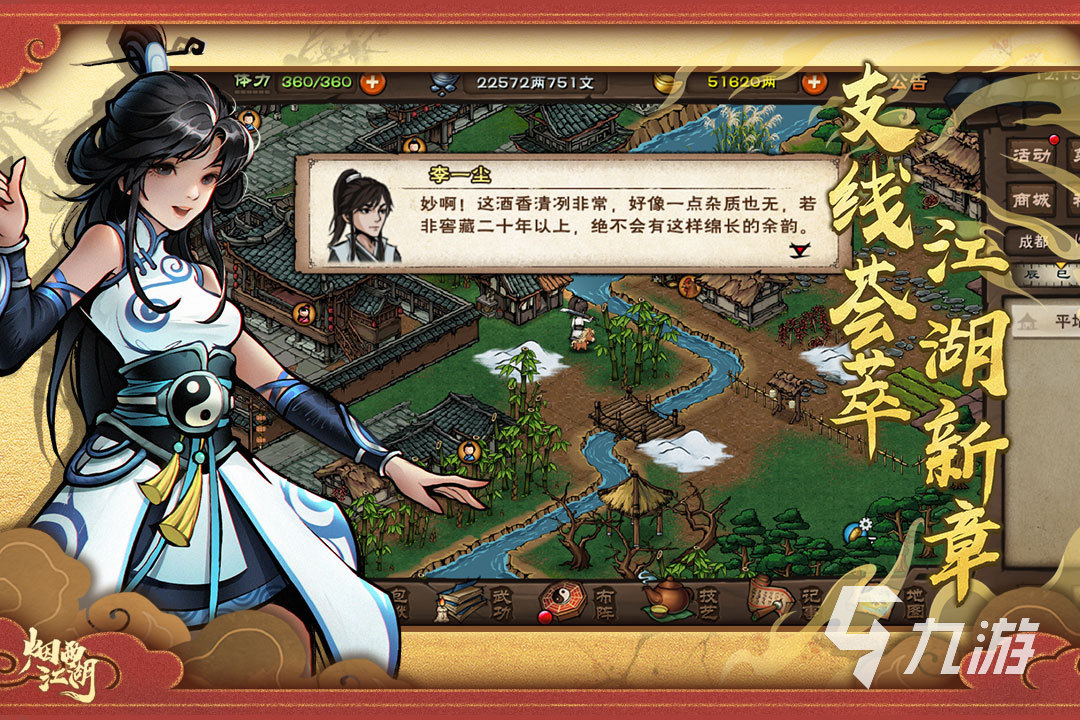 本作为单机向沙盒武侠手游,强调超高行为自由度。玩家可自选初始身份(如书生、镖师、乞丐等)进入江南水乡至塞外荒漠的广袤江湖。所有关键抉择均影响主线走向,最终导向正道、邪道或归隐三条核心路径,共衍生30余种差异化结局。战斗系统采用回合制战棋结构,涵盖拳、剑、刀、棍、暗器、奇门六大武学体系,技能组合超千种;二周目起支持创建专属门派、设定门规并收徒授艺。