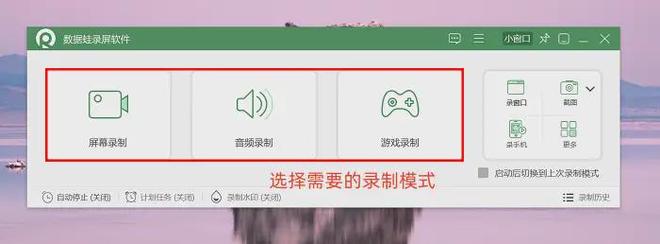 鼠标双击启动程序后,这款电脑录屏的软件初始页面会呈现多种录制选项,不管是要捕捉游戏精彩瞬间,还是快速录制直播窗口内容,该工具都能适配你的使用场景!