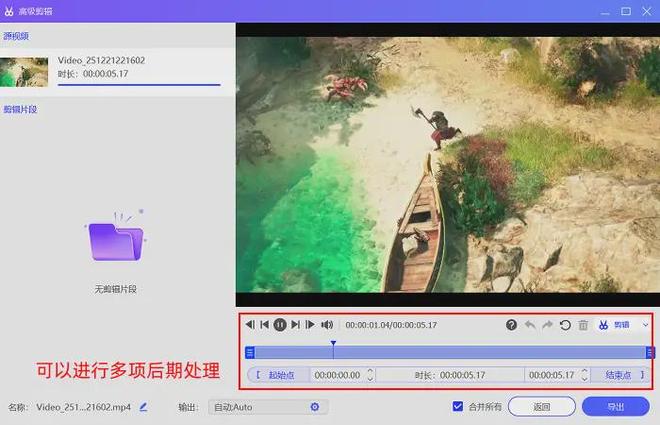 4.录制完成后,点击停止按钮,视频会自动保存到默认路径,也可以在设置里更改保存位置,之后还能使用【高级剪辑】工具对游戏视频进行简单的优化。