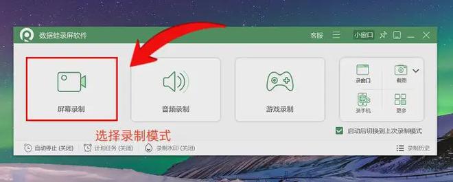 步骤1:怎么录制屏幕视频?双击桌面数据蛙录屏软件图标启动程序,启动后需先明确录制需求,选择对应的录制模式。仅需录制特定窗口时,直接点击窗口录制模式,简化操作流程。