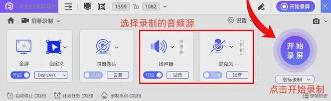 备注:Win11系统录制带声音的屏幕视频,需区分声音来源:录制电脑内部播放声音勾选扬声器,录制外部声音如人声、环境音则勾选麦克风。